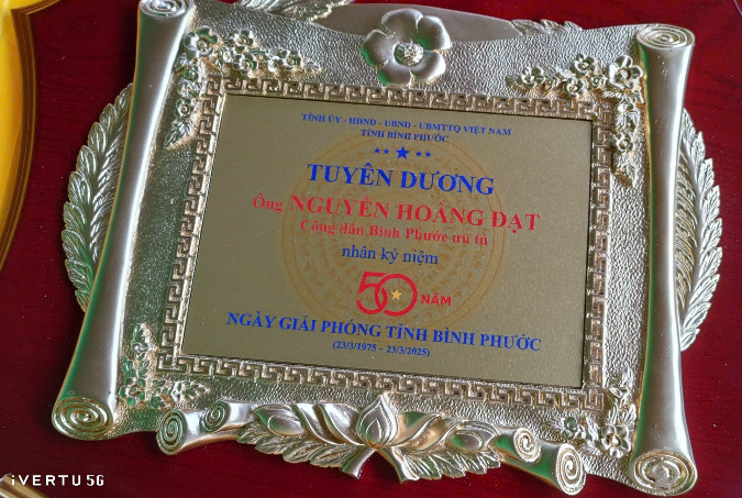 Bằng khen và huy chương tuyên dương tại buổi lễ dành cho ông Nguyễn Hoàng Đạt